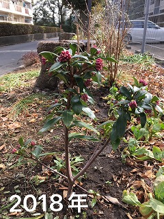 この道を沈丁花通りにするのよ〜と植えていた安藤さん。