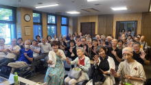 謡曲の発声を体験したあと、お手本をしていただき、会場全体で背筋を伸ばし声を張り上げて朗読し、胸を張って終了しました。楽しく元気が湧いて来る一日でした。 |