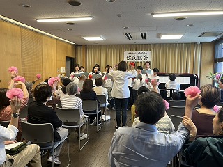 | 〈 けやき憲章 〉 “けやき”の緑ゆたかなこのまちを新しいふるさととして愛し みんなで楽しくまちづくりをすすめます 活動方針 ★誰もが立ち寄りたくなるまちづくりの拠点として共に支え合うセンターを目指します。 ★けやきのよさを継承しながら、夢のある充実したまちづくりをめざしコミュニティの諸活動をすすめます。 活動のテーマ 「新しいつながりをみつけよう」 ![]() ![]() 総会に先立ち大野田小学校PTAコーラスサークルの皆様による 素敵な花の歌にほっとする時間を過ごしました。 |