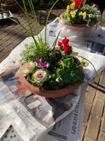 参加者は16名、葉ボタン、シクラメン、ビオラなどでお正月向けの寄せ