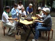 板を焼いて、描いて、塗っての楽しい樹名板作りと千川上水の木々を観察しながらの設置作業を行っています。 |